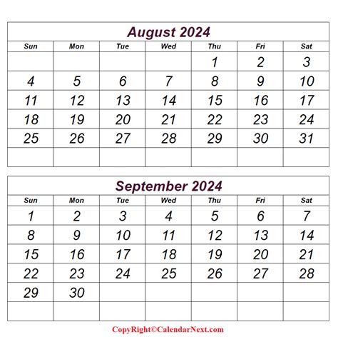 In conclusion, the August September 2024 Calendar Free Printable is a great tool for staying organized and on track. By using a printable calendar, you can easily keep track of important events and festivals, and customize the calendar to your liking. Whether you’re planning a picnic for National Watermelon Day or getting ready for the first day of fall, a printable calendar can help you stay on top of your schedule and make the most of your time.